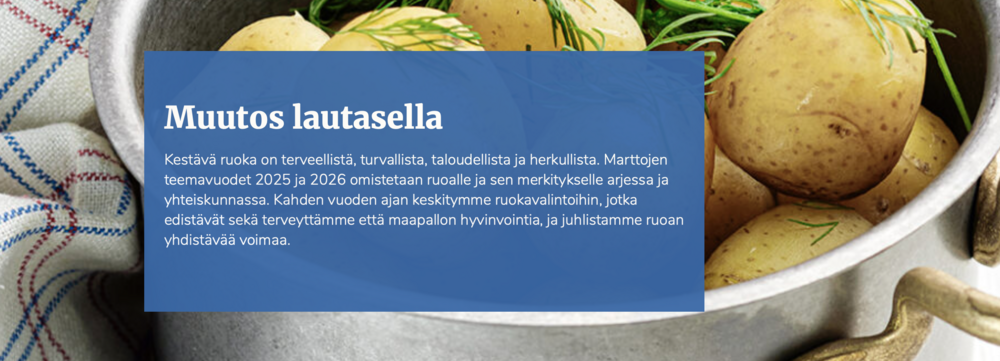 - Martat ovat kotitalousneuvontajärjestö, jonka strategia on tehdä arjen tekoja huomista varten teemalla "Hyvästä arjesta parempi maailma".