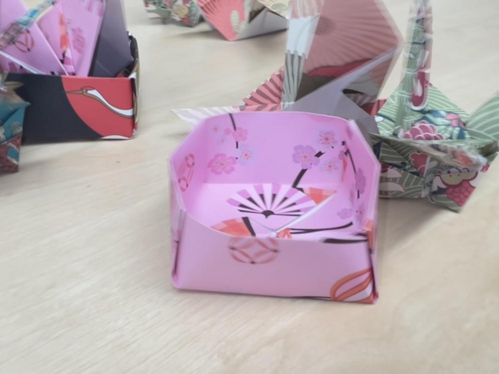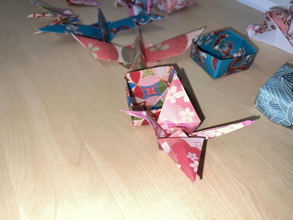 Japanilaisen paperitaittelun pariin ohjasi tokiolainen taiteilija Eri Fuguda. Teimme laatikon, linnun ja kurjen, ja kaikista tuli oman näköisensä. Arigato, Eri!