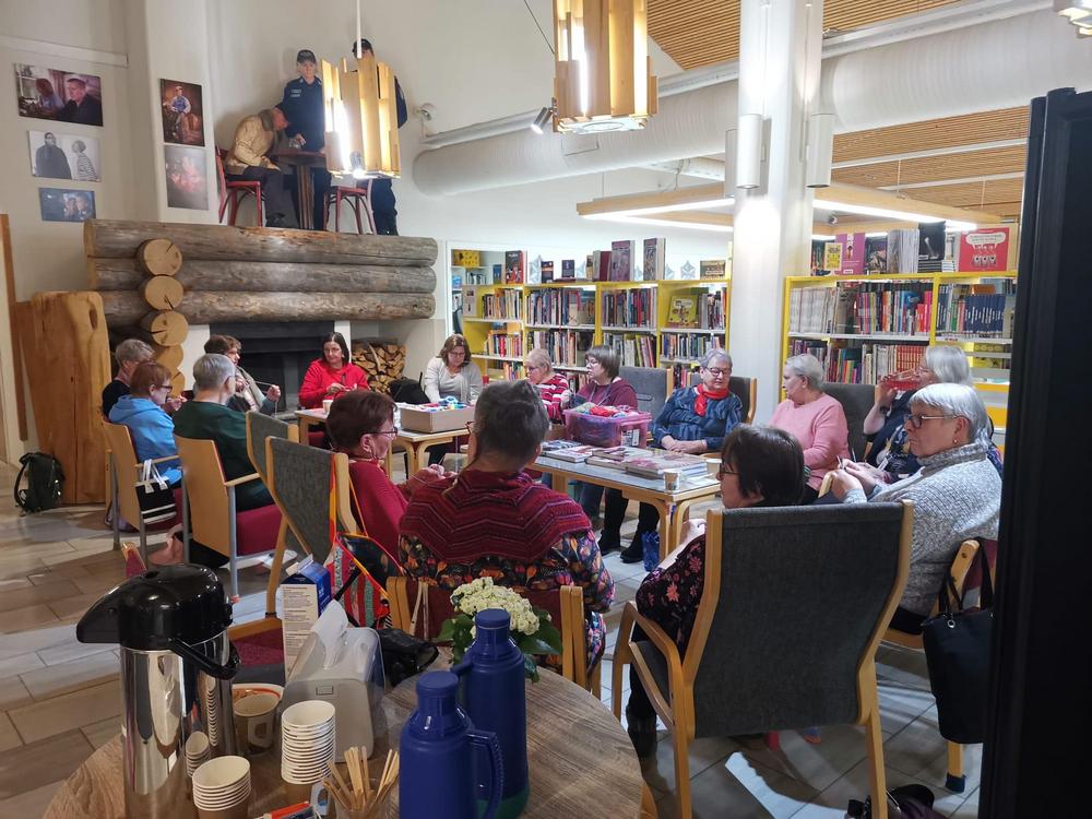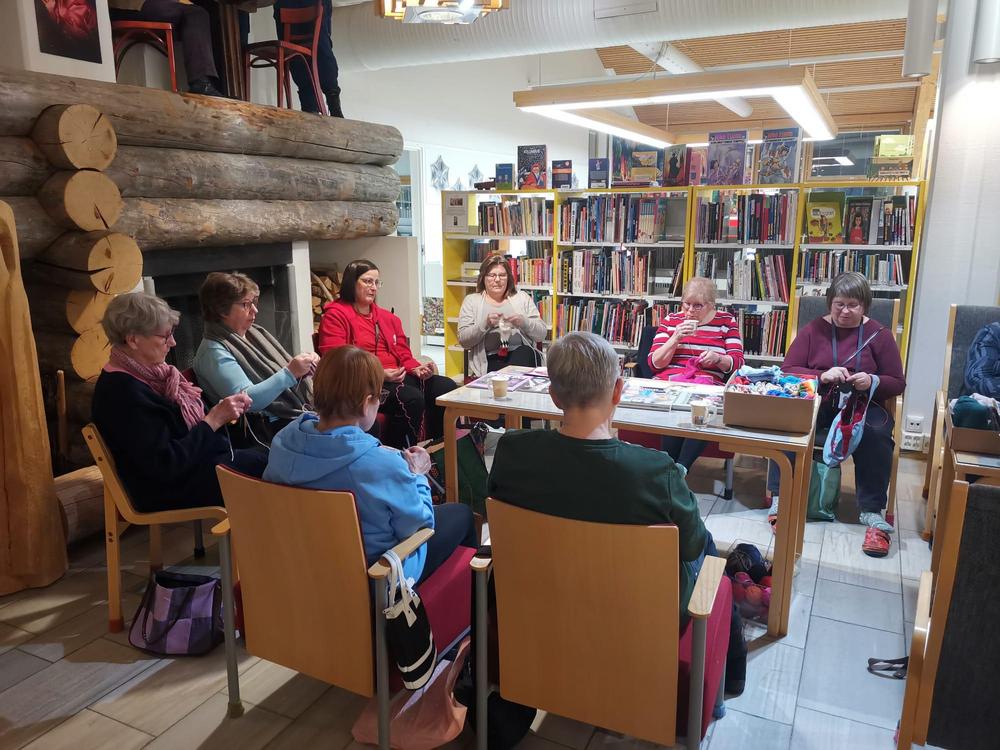 Vastasimme Pelastakaa Lapset -yhdistyksen pyyntöön kutoa kemijärveläisille eskarilapsille sukkia. Kirjastoon tuli 17 kutomaan, kahvittelemaan tai muuten vain juttelemaan. Sukkiakin tuli yli 30 paria. Toinen samanlainen tilaisuus oli 6.2. Sukkia tuli yli 100 paria!