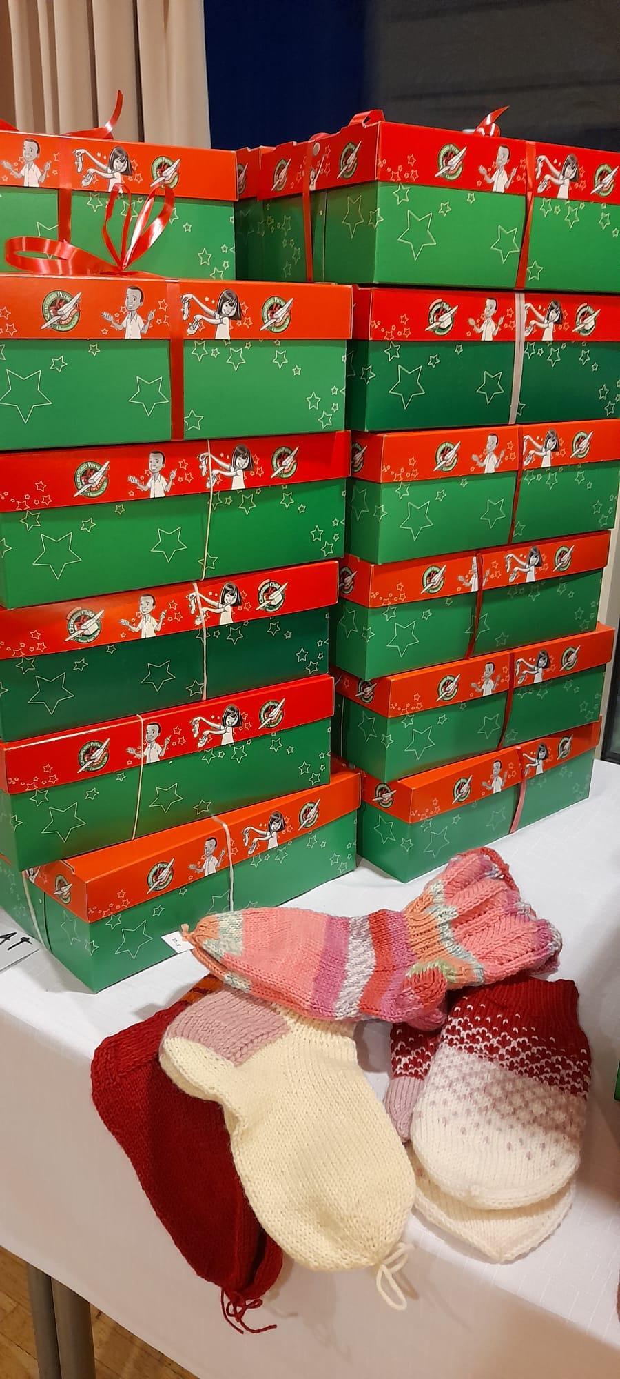 Martat osallistuivat kutoen sukkia, lapasia ja pipoja sekä keräten pieniä tarvikkeita Joulunlapsi-paketteihin Romanian, Moldovan ja Ukrainan lapsille.