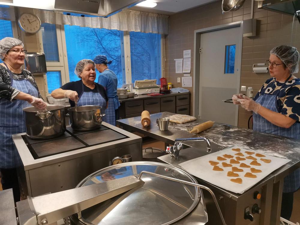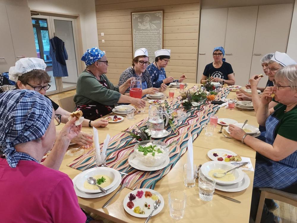Meille Maistuu Arki(Marki)-hankkeen puitteissa kokattiin ukrainalaisten kanssa suomalaista edullista arkiruokaa. Listalla: Hernepyörykät ja perunamuusi, porkkanarieskat, vihersalaatti. Jälkiruokana pannukakku mansikkahillon ja kermavaahdon kera.