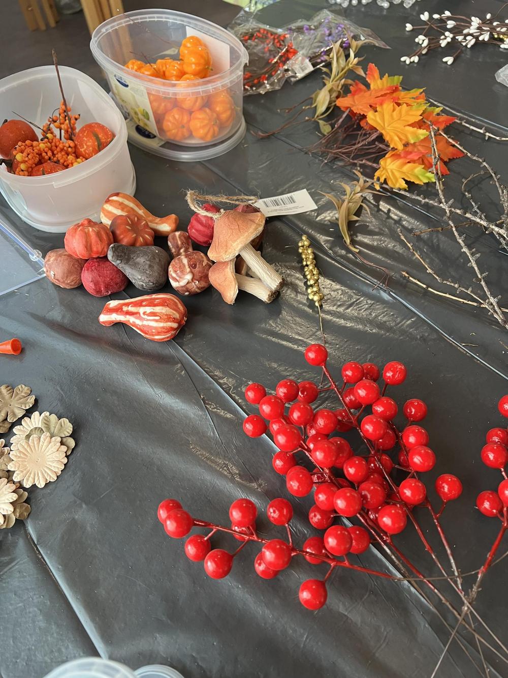 Kässäilta 11.9. kulttuurikahviossa: Syksyisiä koristeita.