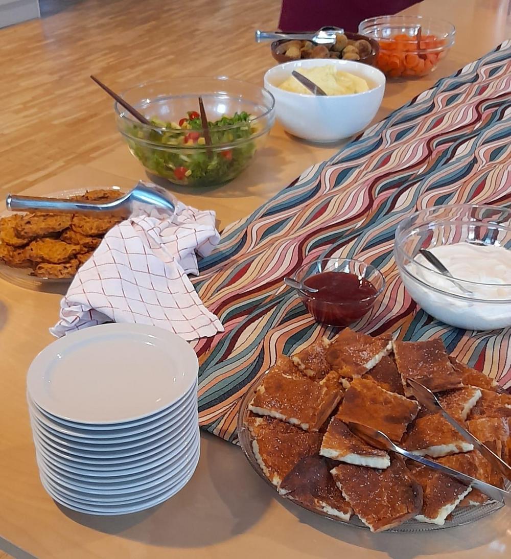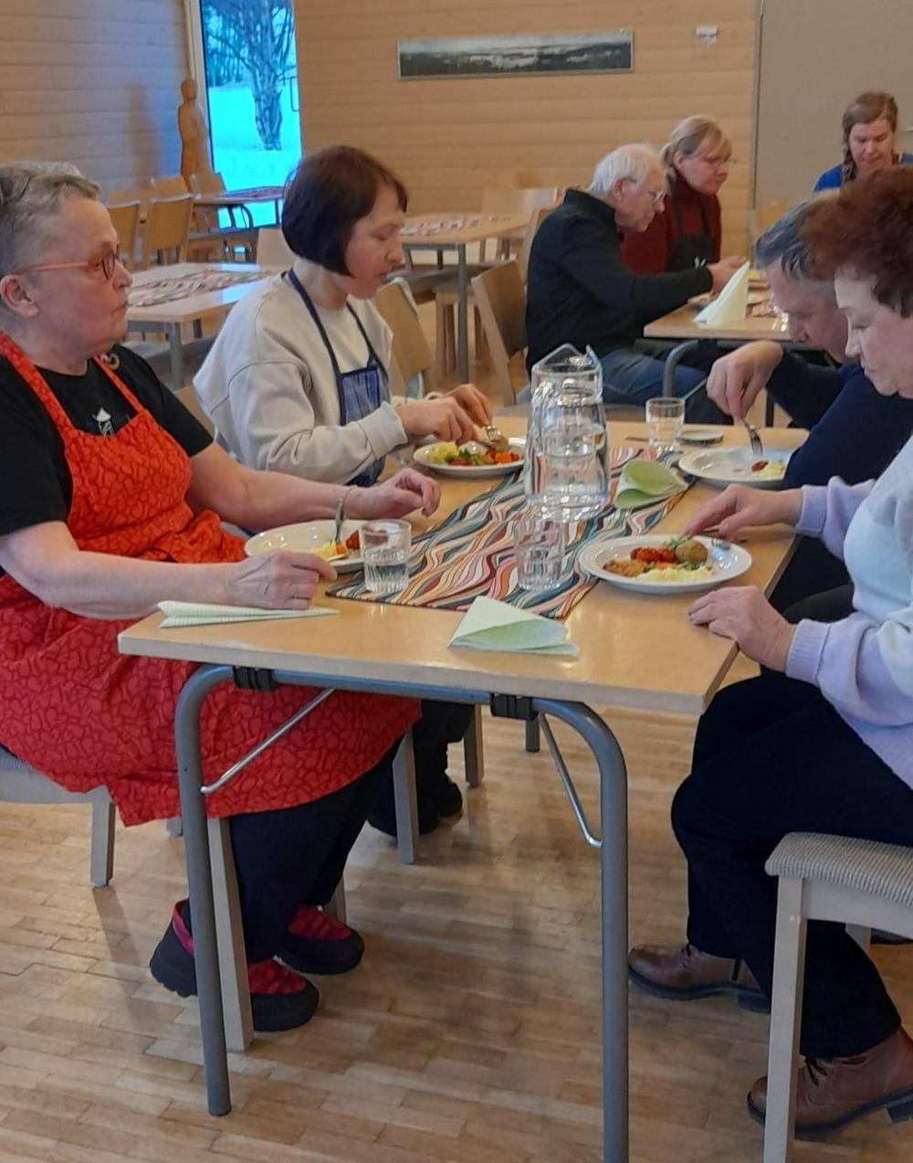 Meille Maistuu Arki(Marki)-hankkeen puitteissa kokattiin ukrainalaisten kanssa suomalaista edullista arkiruokaa. Listalla: Hernepyörykät ja perunamuusi, porkkanarieskat, vihersalaatti. Jälkiruokana pannukakku mansikkahillon ja kermavaahdon kera.