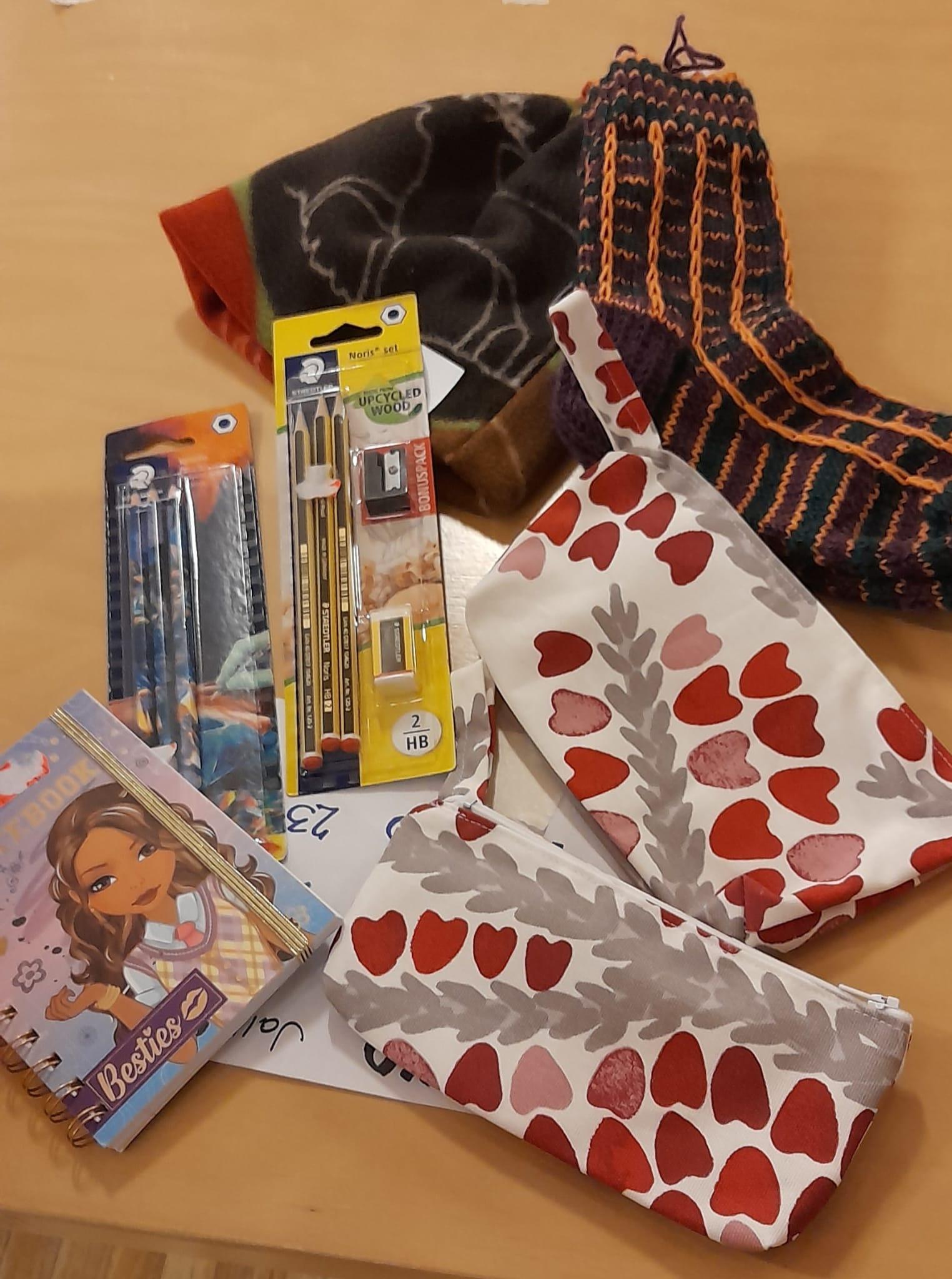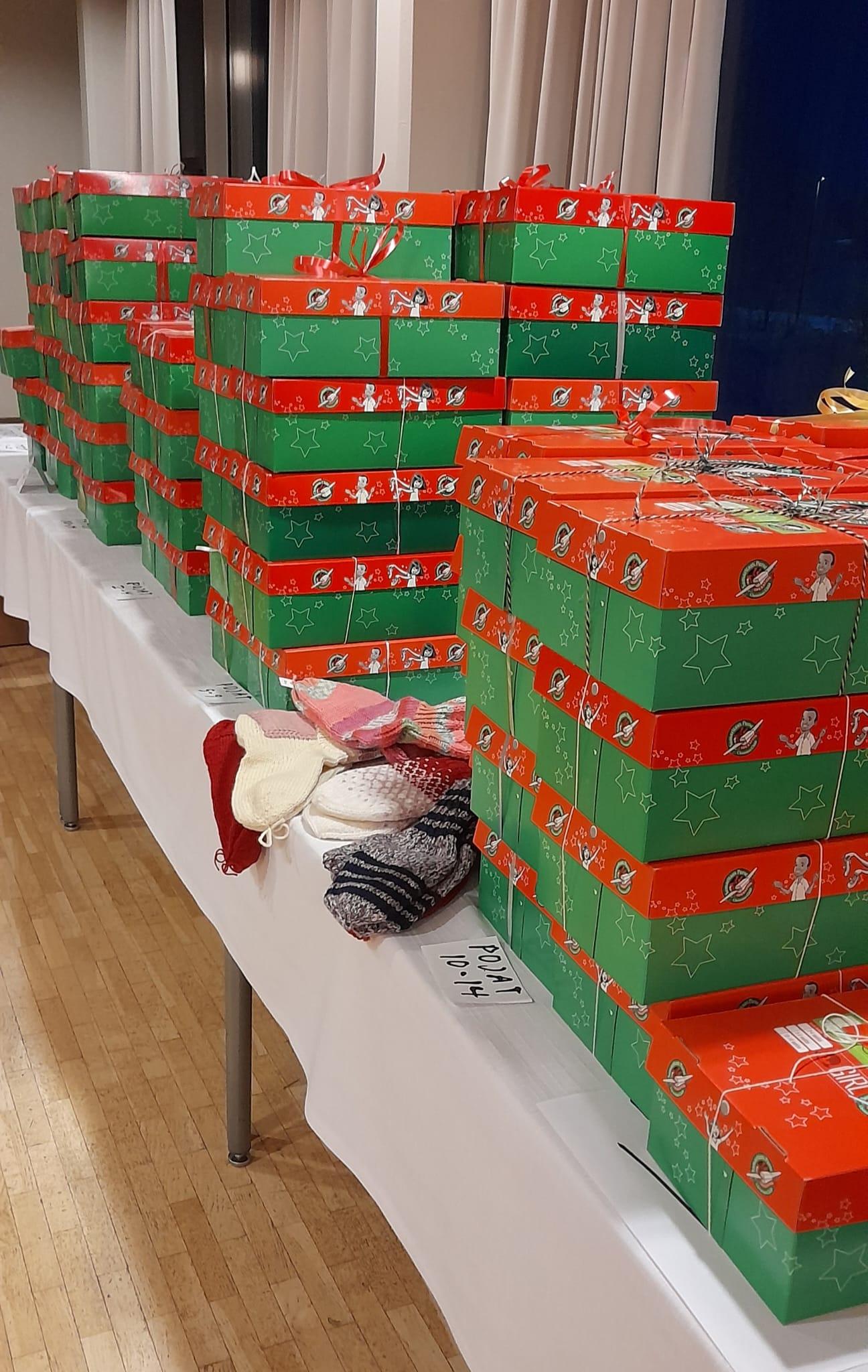 Martat osallistuivat kutoen sukkia, lapasia ja pipoja sekä keräten pieniä tarvikkeita Joulunlapsi-paketteihin Romanian, Moldovan ja Ukrainan lapsille.