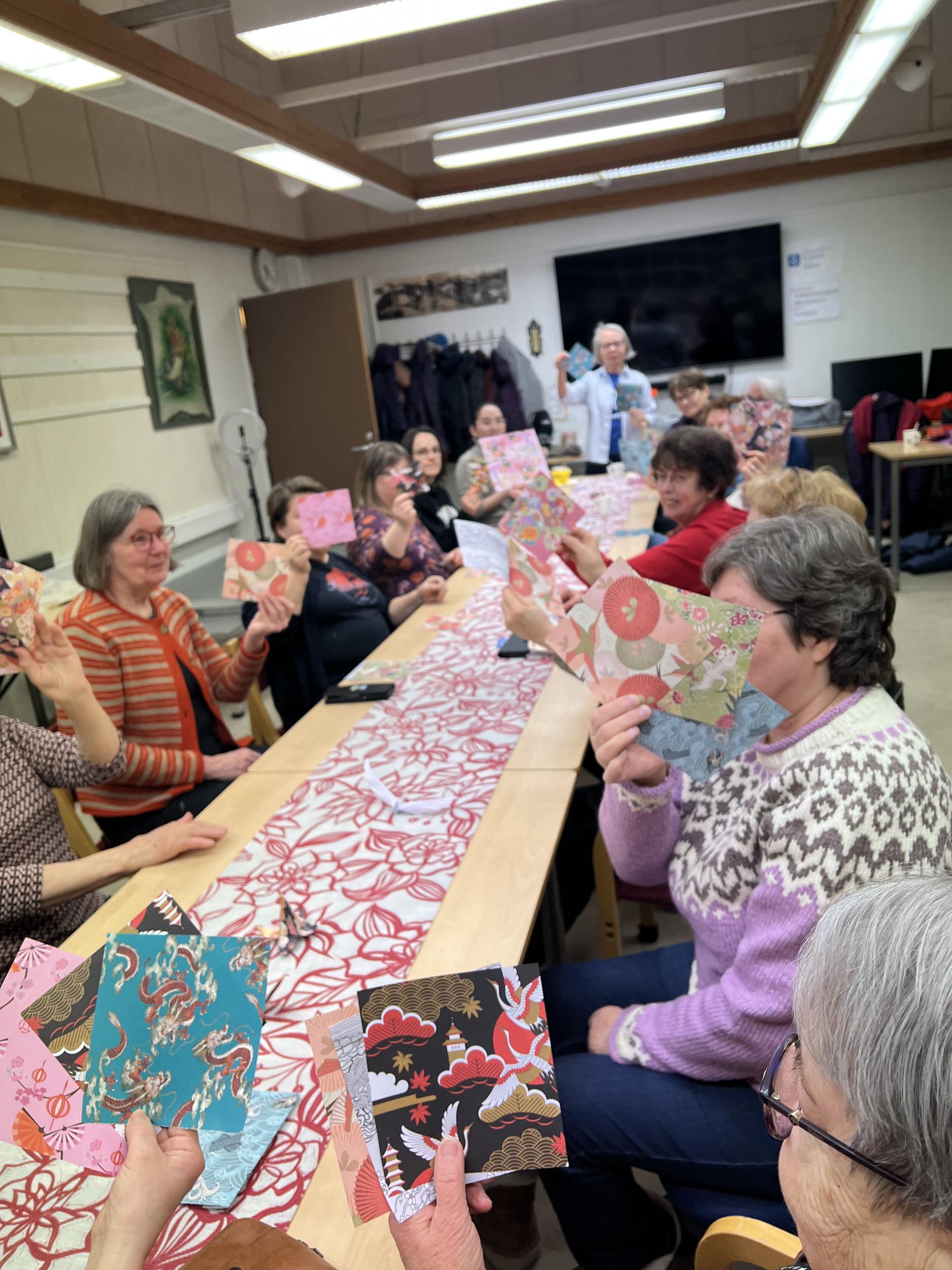 Japanilaisen paperitaittelun pariin ohjasi tokiolainen taiteilija Eri Fuguda. Teimme laatikon, linnun ja kurjen, ja kaikista tuli oman näköisensä. Arigato, Eri!